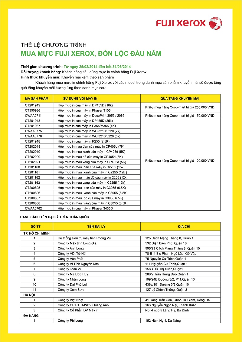Khách hàng mua mực in chính hãng Xerox với các mã mực theo danh mục sản phẩm khuyến mãi sẽ được tặng, Quà tặng là phiếu mua hàng siêu thị Coop-mart ..