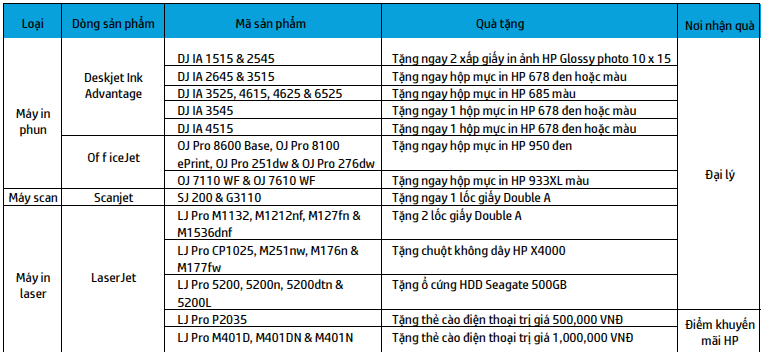 - HP có quyền thay thế quà tặng có giá trị tương đương hoặc dừng chương trình trước thời hạn mà không cần thông báo trước.